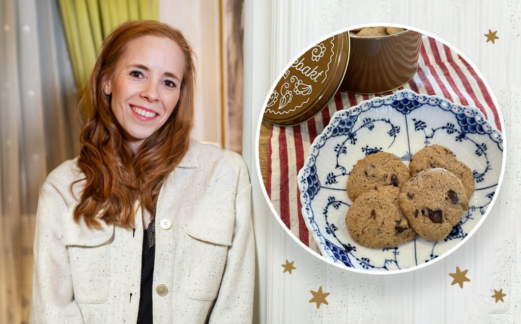I Husmorskolen er de glade i småkaker, for gode husmødre vet å trylle frem en kakeboks med noe hjemmelaget når det kommer gjester på besøk. Her har jeg laget gode, gammeldagse småkaker med sjokoladebiter og masse deilig julekrydder. Perfekte til kaffekoppen, enda bedre til et glass iskald melk.